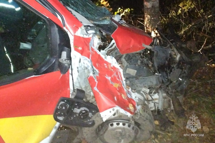 Спасатели прибыли на место происшествия для деблокирования пострадавшего из поврежденной машины, человека удалось достать с помощью гидравлического аварийно-спасательного инструмента.